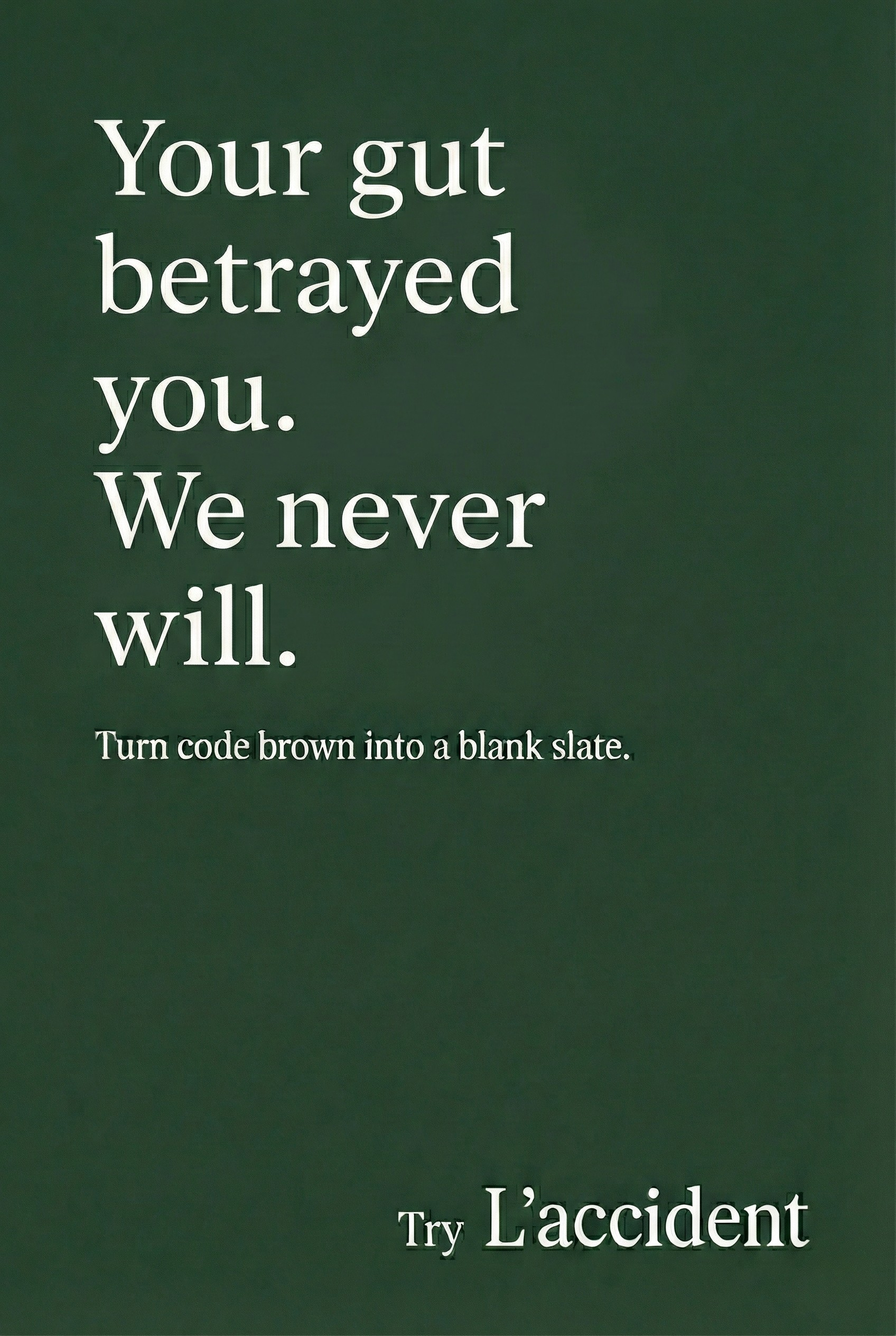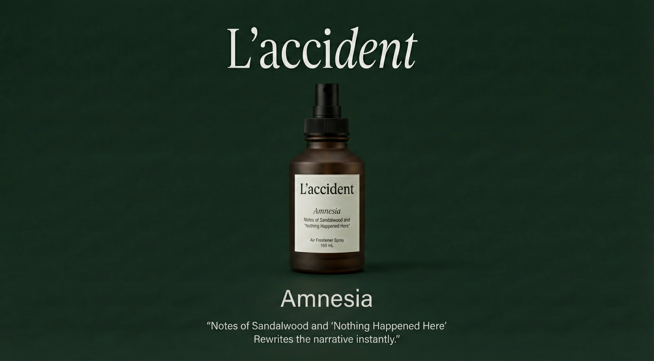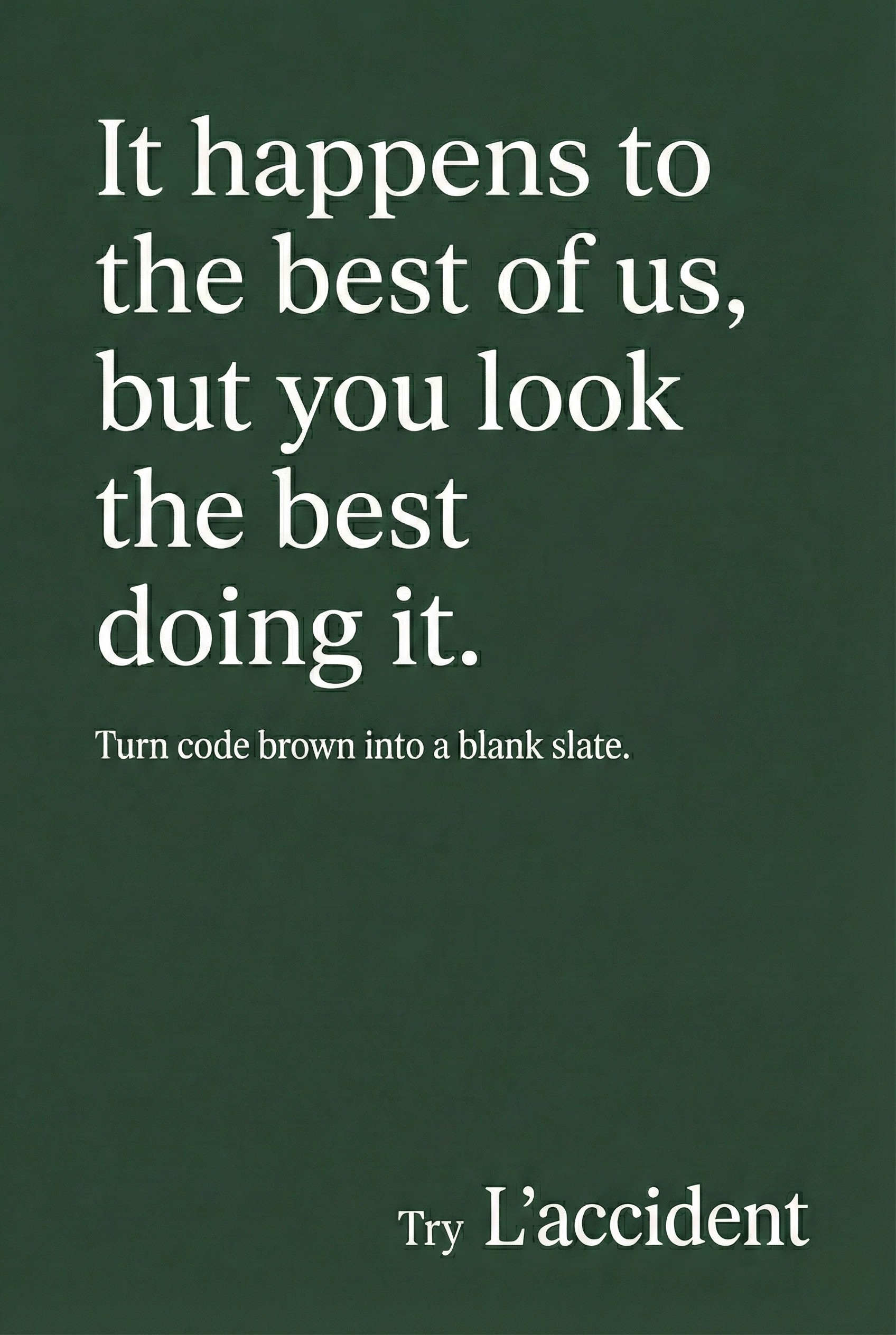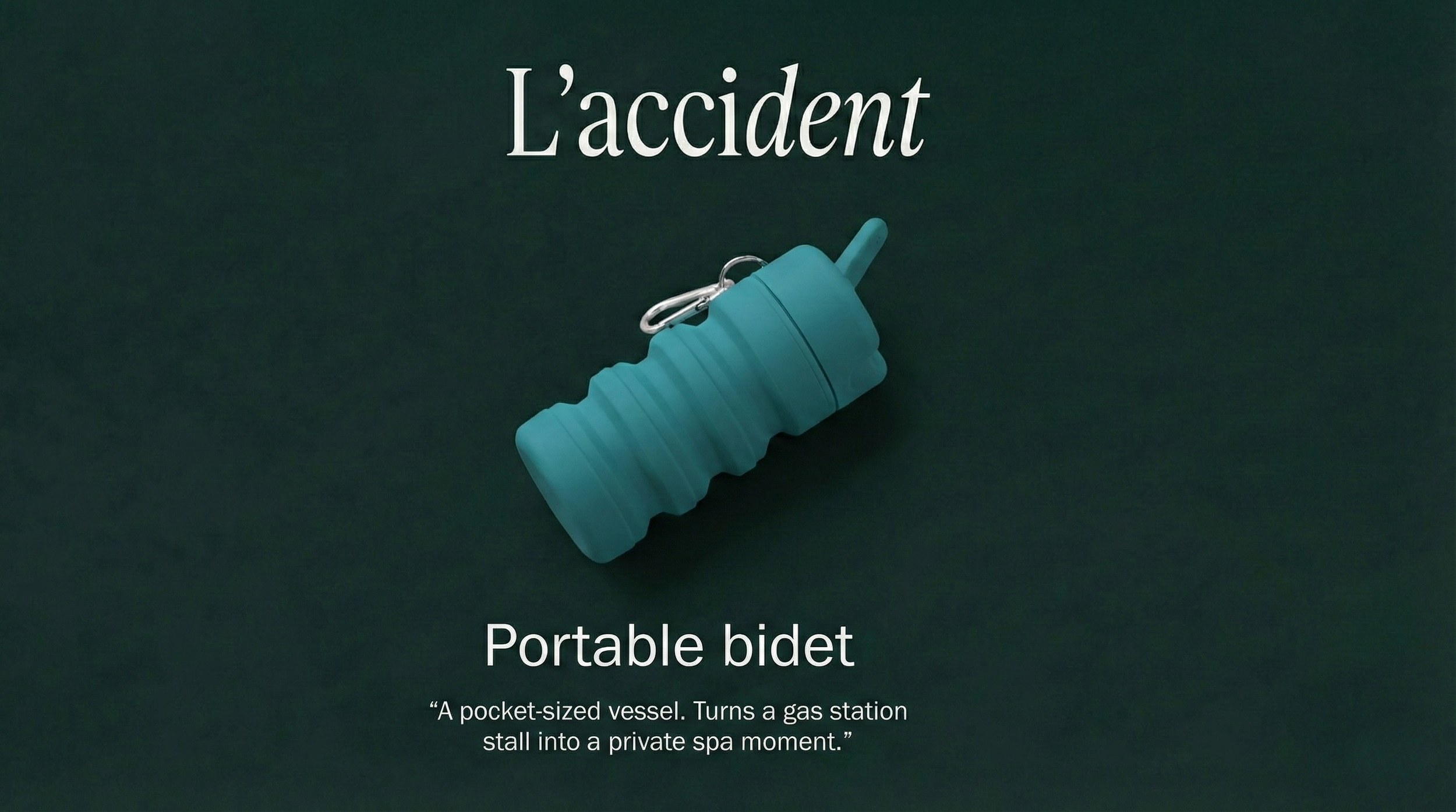 I identified a whitespace in the market. Specifically, the whitespace between "everything is fine" and "I need to go home immediately." L'accident is the first luxury skincare regimen for the unspoken aftermath of a bad day—treating the most overlooked part of the body with the reverence it rarely gets.