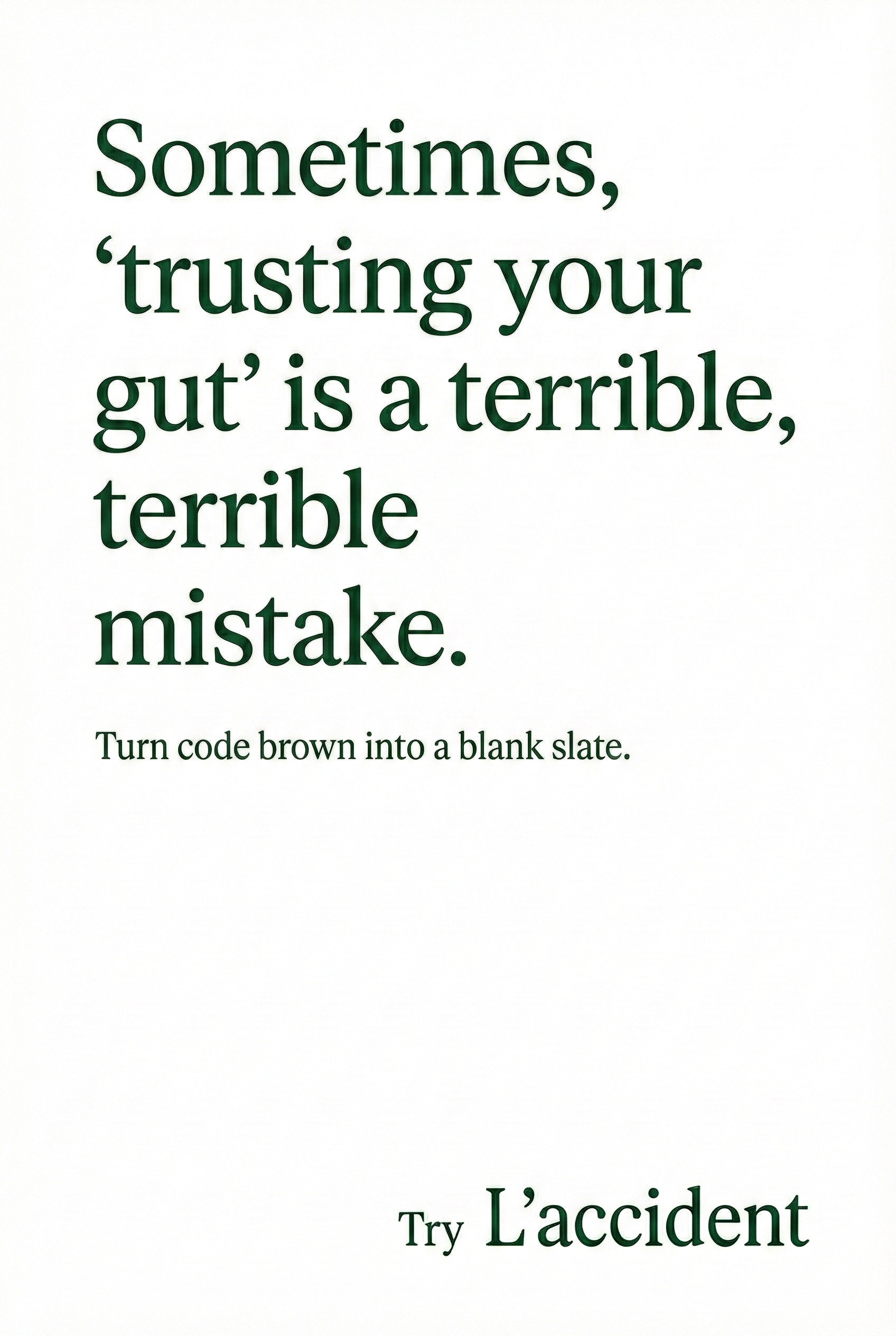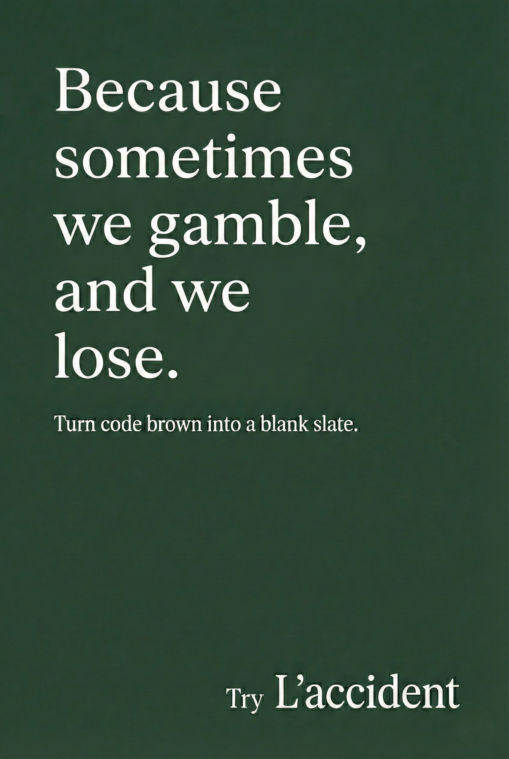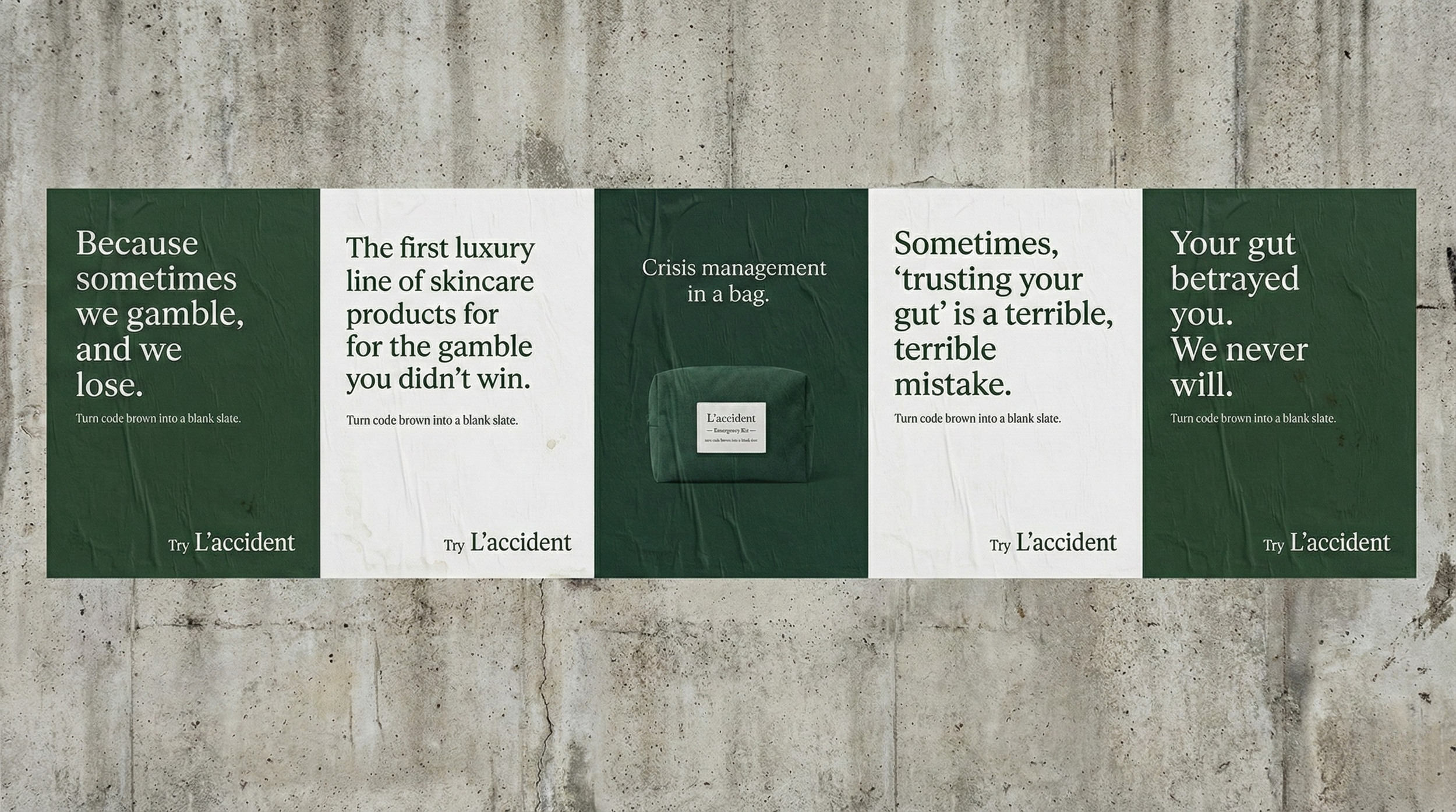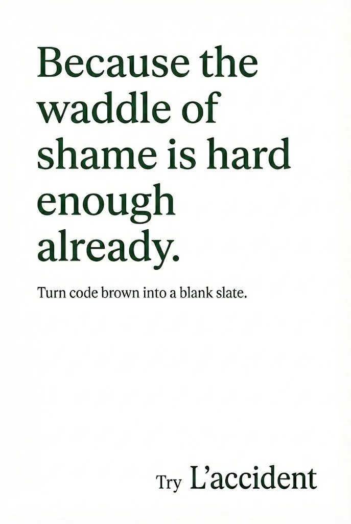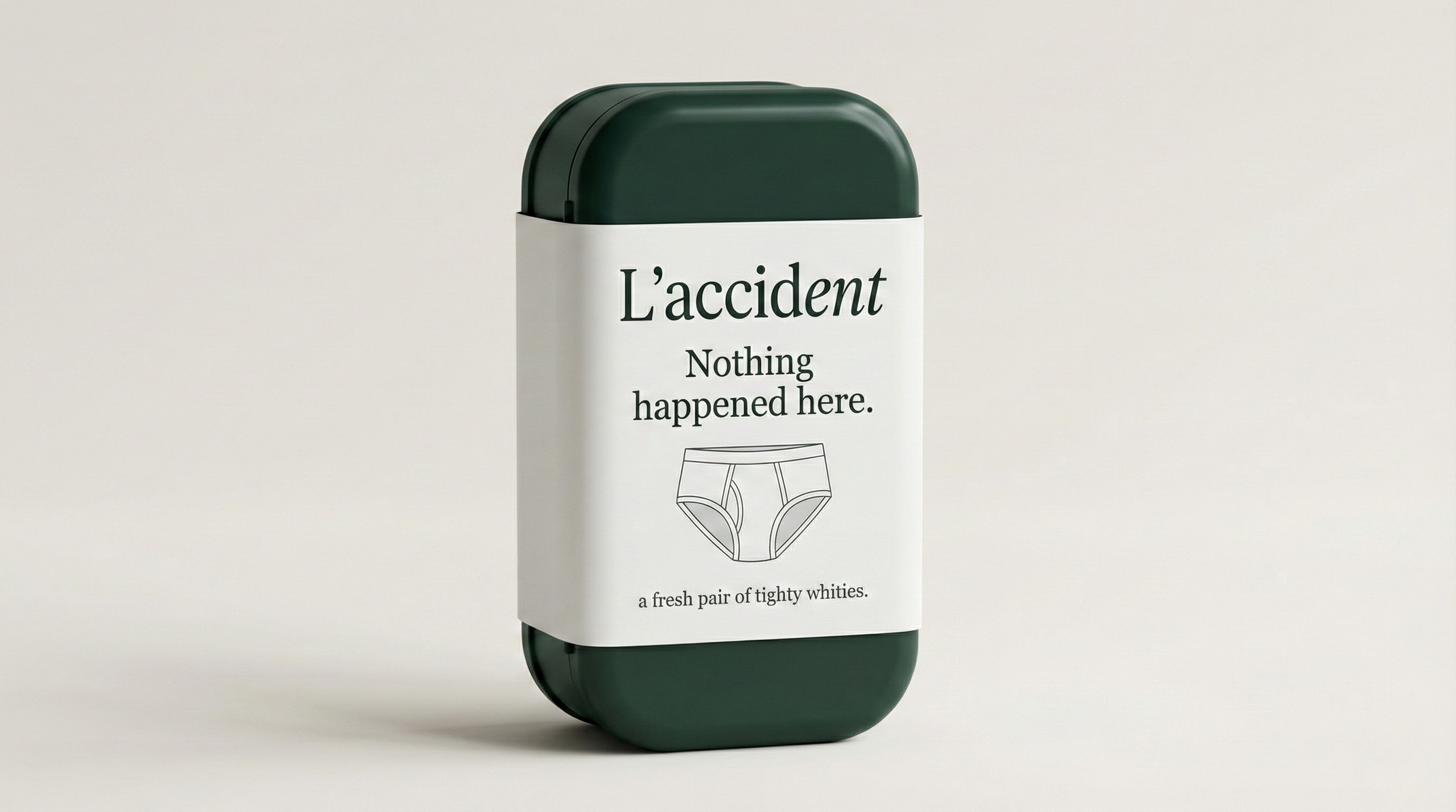 I identified a whitespace in the market. Specifically, the whitespace between "everything is fine" and "I need to go home immediately." L'accident is the first luxury skincare regimen for the unspoken aftermath of a bad day—treating the most overlooked part of the body with the reverence it rarely gets.